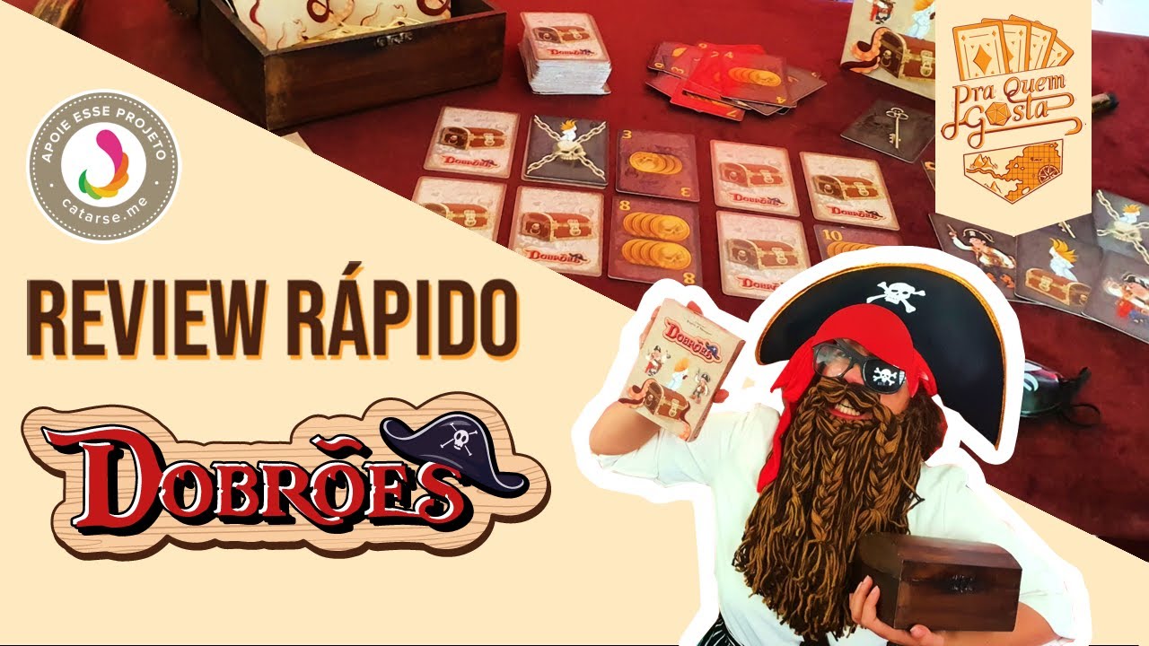 Este é o nosso review rápido do protótipo de DOBRÕES, um jogo simples, rápido e divertido onde vocês assumem o papel de piratas canastrões dos sete mares buscando abrir o máximo de baús para juntar uma fortuna em dobrões de ouro! Um jogo de cartas dinâmico e ótimo praquela jogatina rápida com os amigos e especialmente pra quem está começando nos jogos de tabuleiro, DOBRÕES é um jogo que vale a pena conhecer! 💖